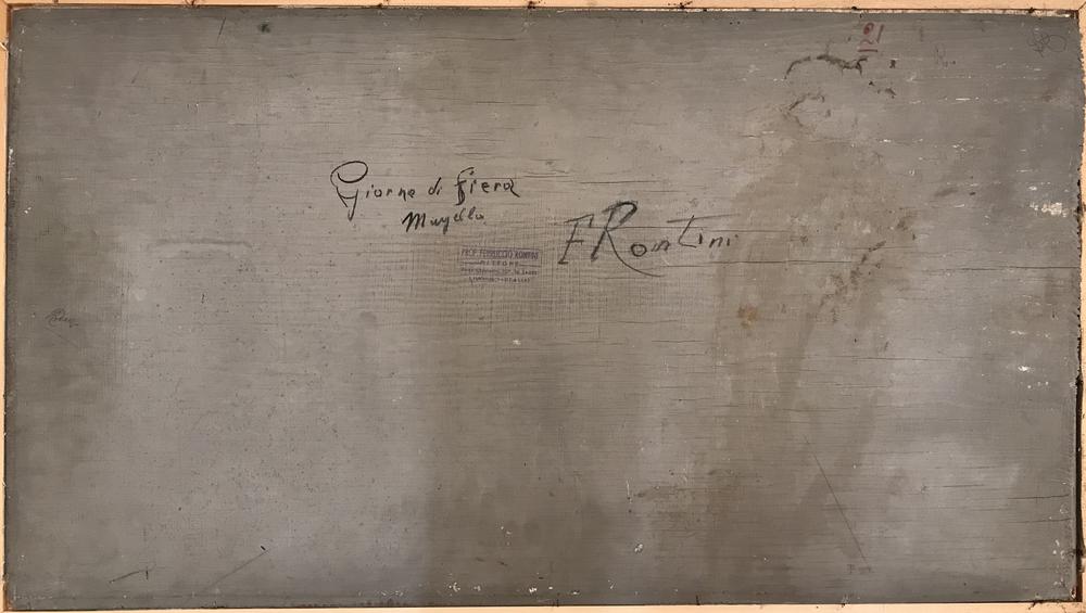 Rontini Ferruccio GIORNO DI FIERA MUGELLO olio su compensato, cm 48,5x87,5...