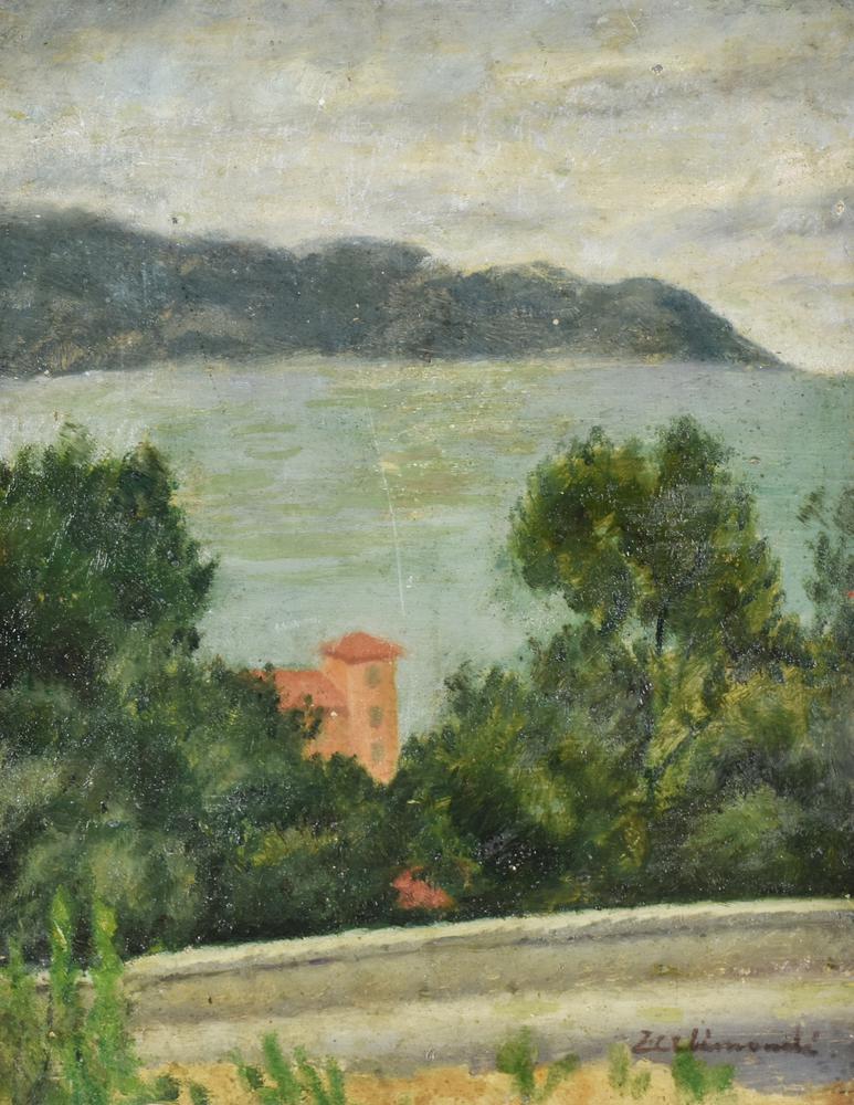 Allimandi Enrico SUL LAGO olio su cartone, cm 35x27 sul fronte: firma...