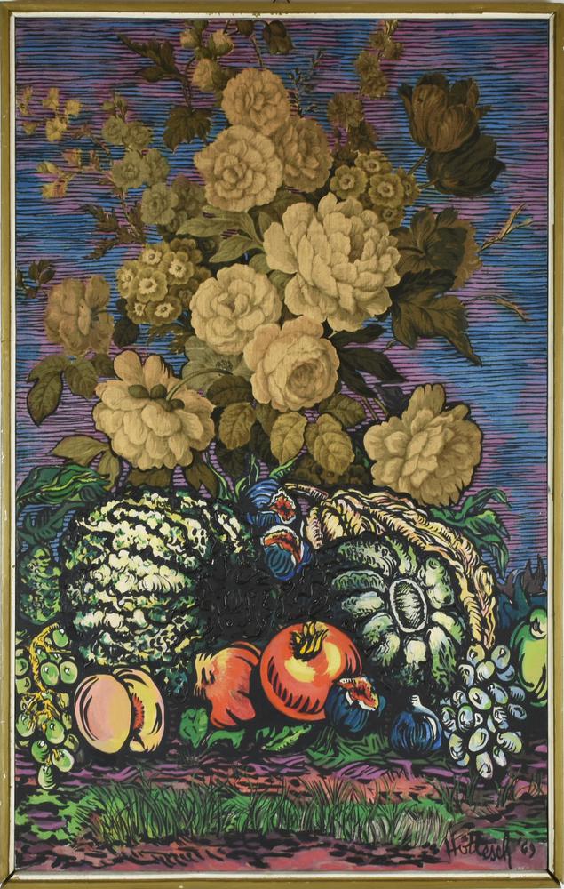 Lot 322 | Hollesch Carlo FIORI STAMPATI CON ZUCCHE tecnica mista su tela, cm 98x61 sul...