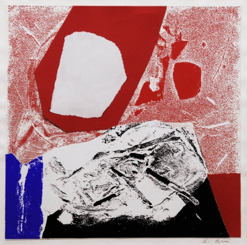 EDMONDO BACCI 1913 - 1989 Senza titolo, 1971 Tempera e collage su carta serigrafica, cm. 56 x 56 Firmato in basso a destra Autentica Archivio Bacci su fotografia Prov. Collezione Privata