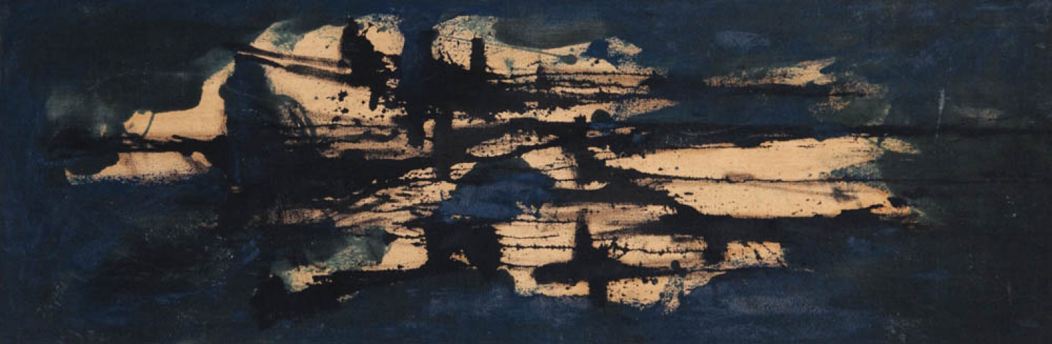 UMBERTO MILANI 1912 - 1969 " Piani orizzontali ", 1960 Olio su tela, cm. 50 x 150 Firmato e datato sul retro Etichetta Galleria Penelope sul retro Timbro Galleria del Milione sul retro Prov. Collezione Privata