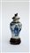Piccolo vaso con coperchio in porcellana su fondo craquelè. Marchio apocrifo...