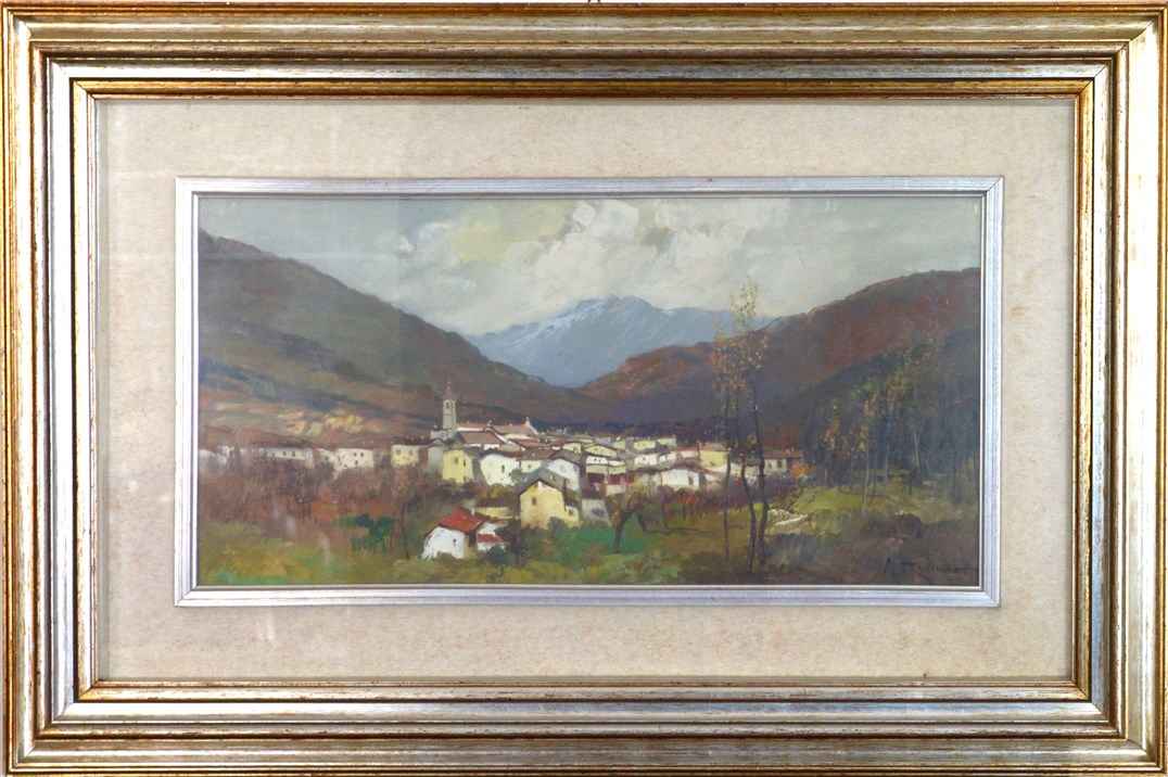Mario Regano "Scorcio di paese" olio su tela (cm 30x60) Firmato in basso a...