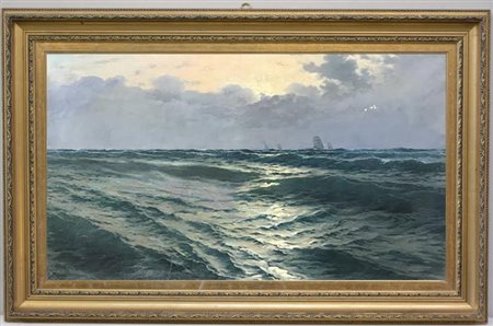 "Marina di Capri" olio su tela (cm 92x53) firmato in basso a sinistra, reca al verso etichetta della galleria R. Bollardi & C. In cornice (difetti)