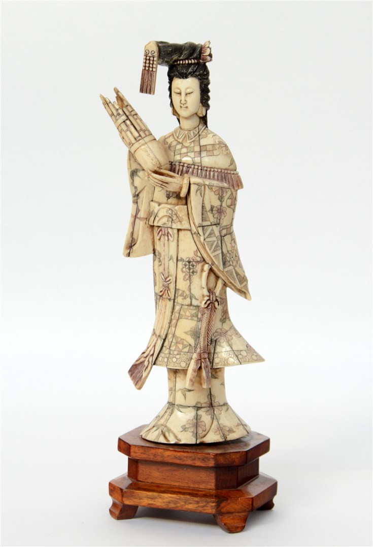 Figura femminile in osso e avorio su base in legno (difetti) Cina, sec XX (h....