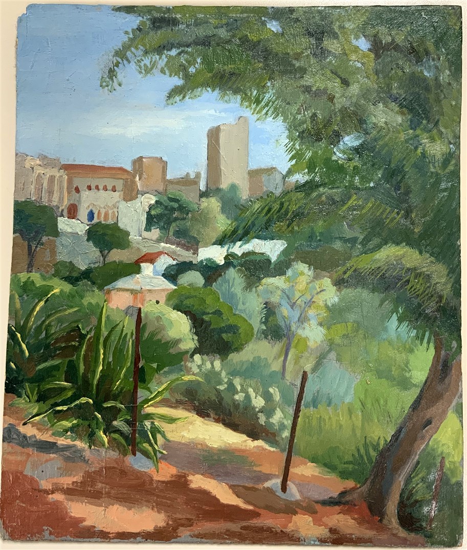 Ignoto "Cagliari, Torre di S.Pancrazio" olio su compensato (cm 30x25) Al retro: locato e datato 8.X.44.(difetti)