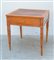 Tavolino quadrato in noce a quattro cassetti, gambe rastremate, piano in...