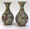 Coppia di vasi in porcellana policroma decorati con figure e motivi floreali