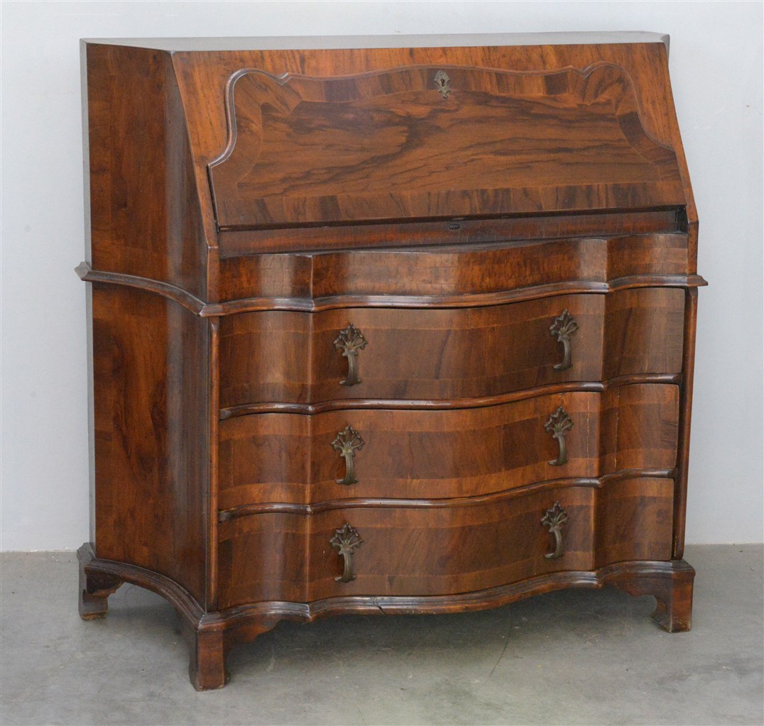 Ribalta con fronte mossa a tre cassetti, calatoia celante quattro cassettini...
