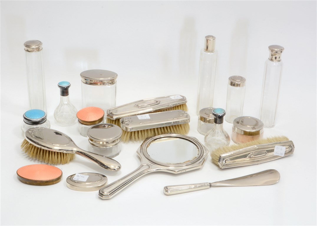 Lot 221 | Lotto composto da diciotto pezzi da toilette in argento e vetro. Alcuni con...