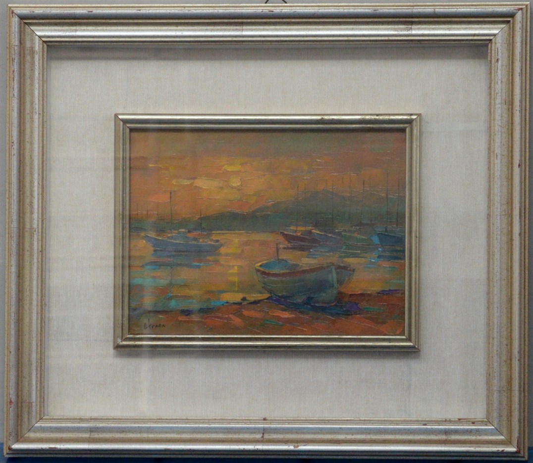 Ettore Frana "Tramonto autunnale" olio su cartone (cm 18x24) firmato in basso a sinistra, in cornice (difetti)