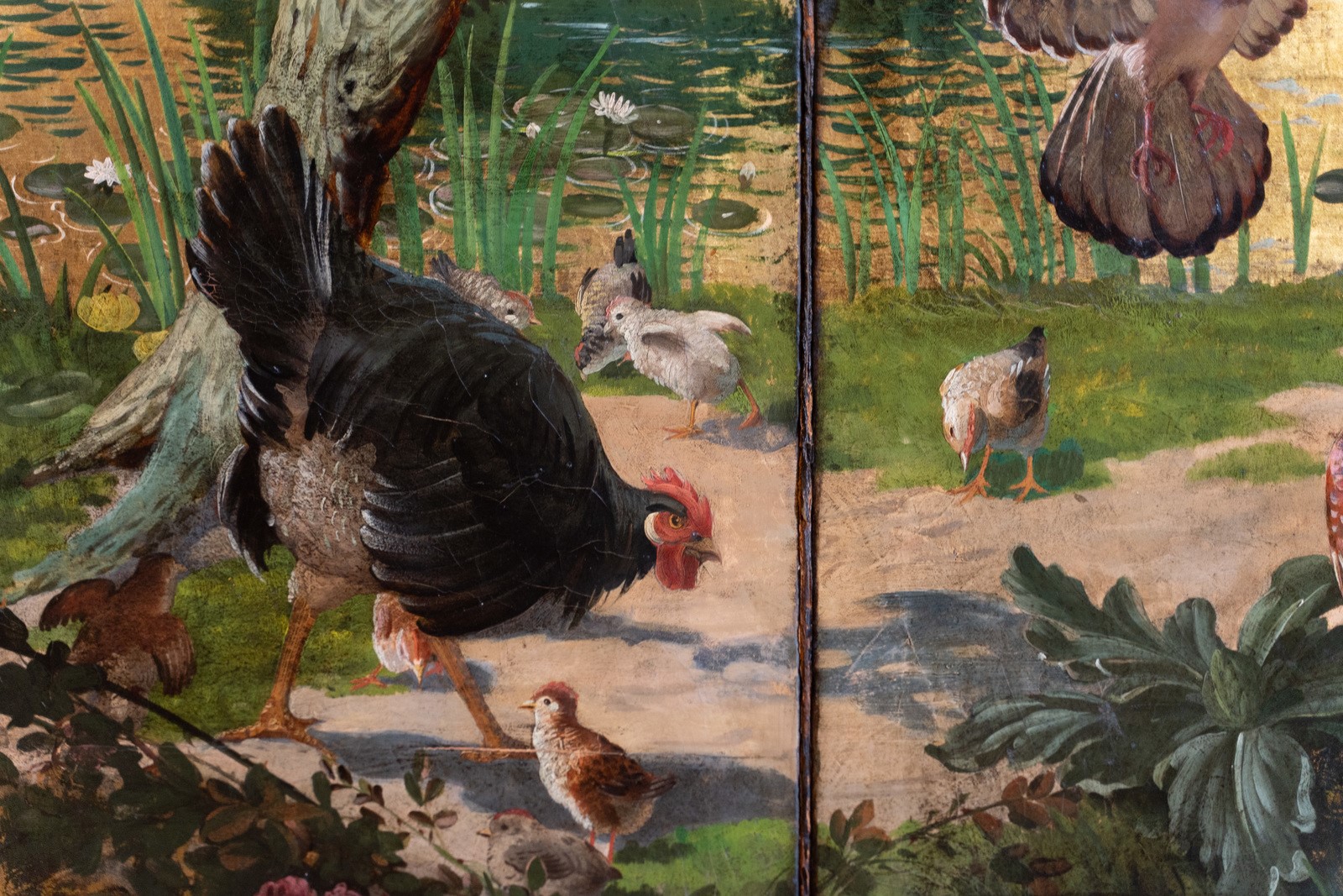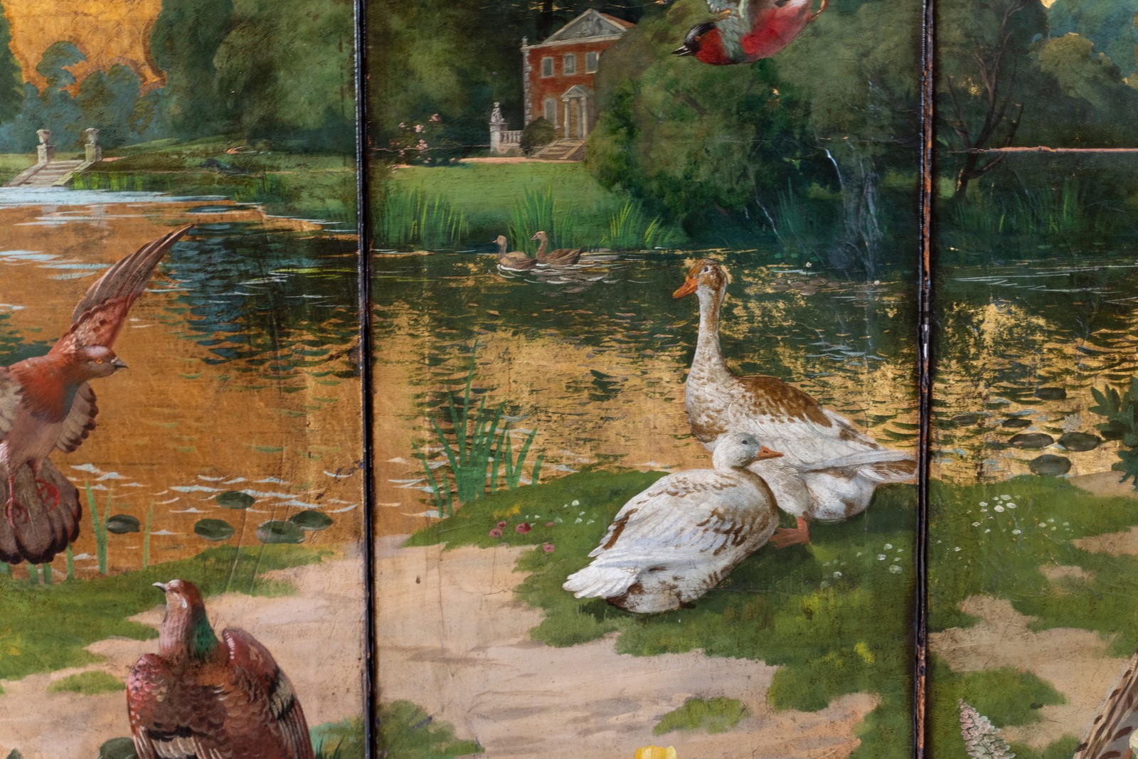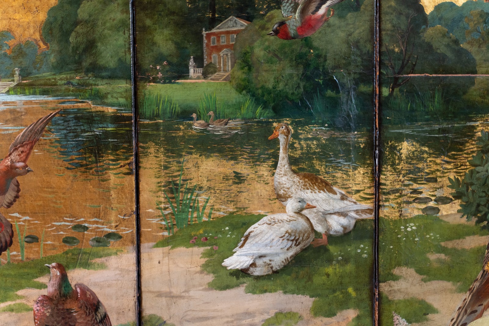 Chinese Art A Chinese style painting on leather Europe, 19th century . . Cm 205,00 x 181,50. Provenance: private collection Rome.