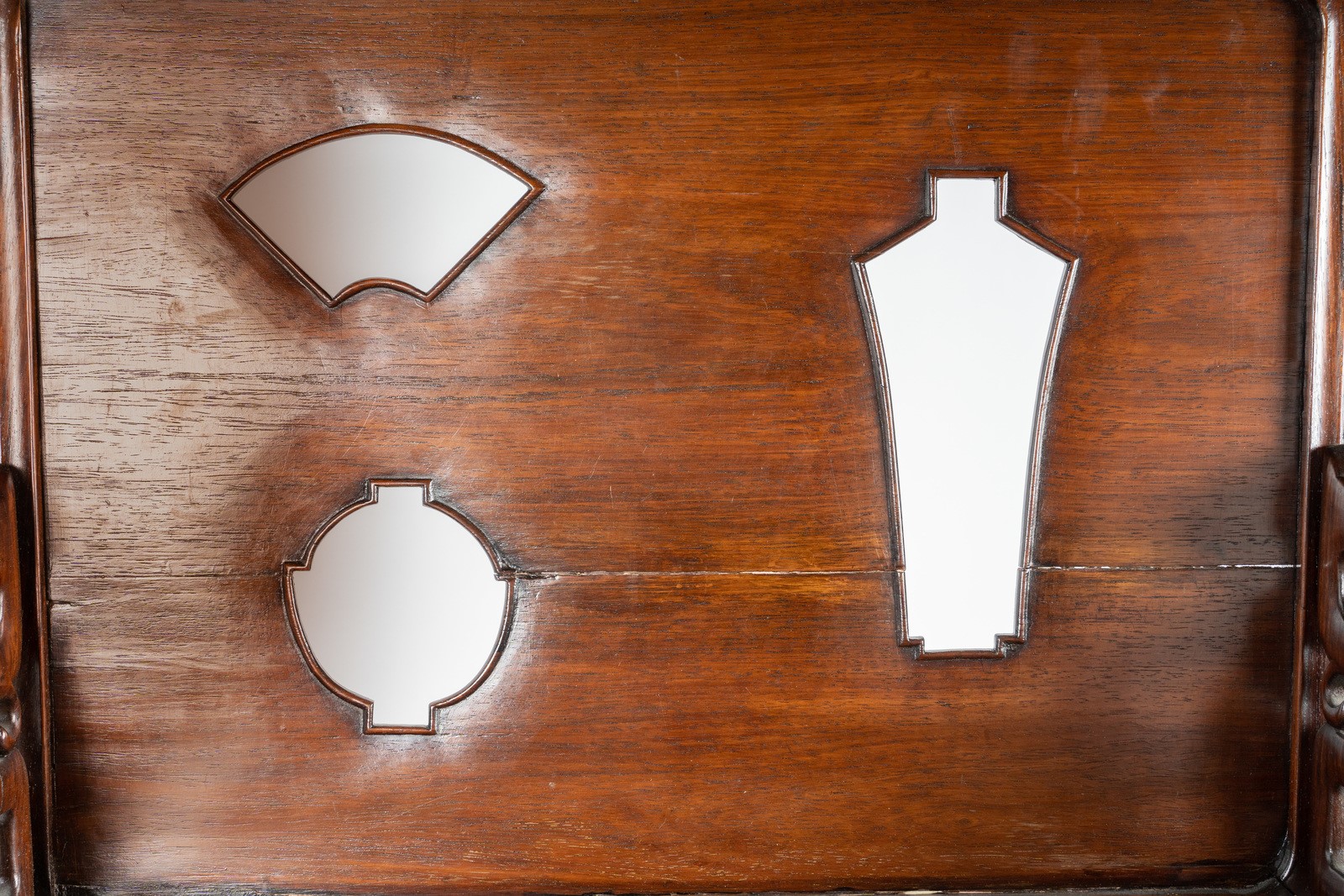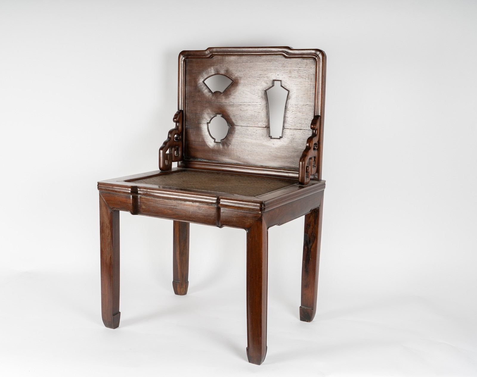 Chinese Art A huanghuali chair with seatback carved with the silhouette of antiqueties China, first half 19th century . . Cm 60,00 x 95,00 x 47,50.