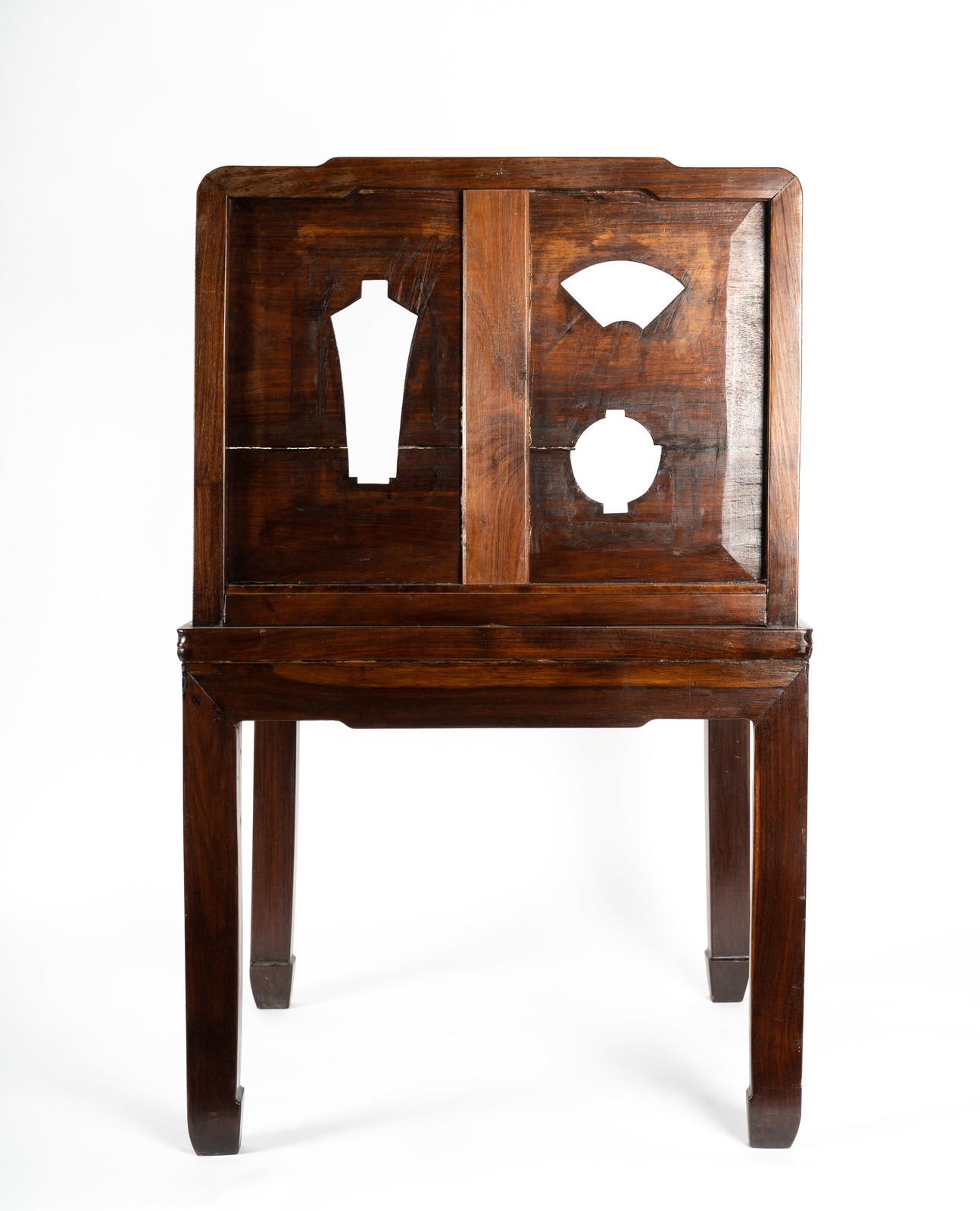 Arte Cinese A huanghuali chair with seatback carved with the silhouette of antiqueties China, first half 19th century .