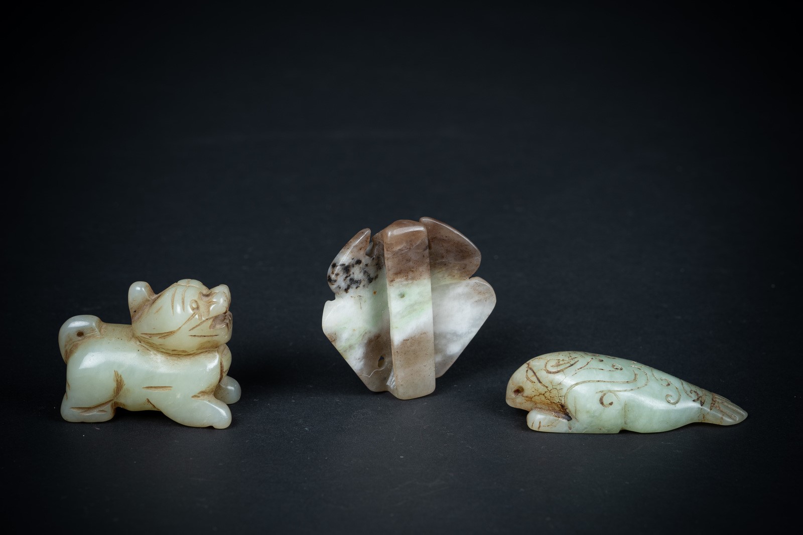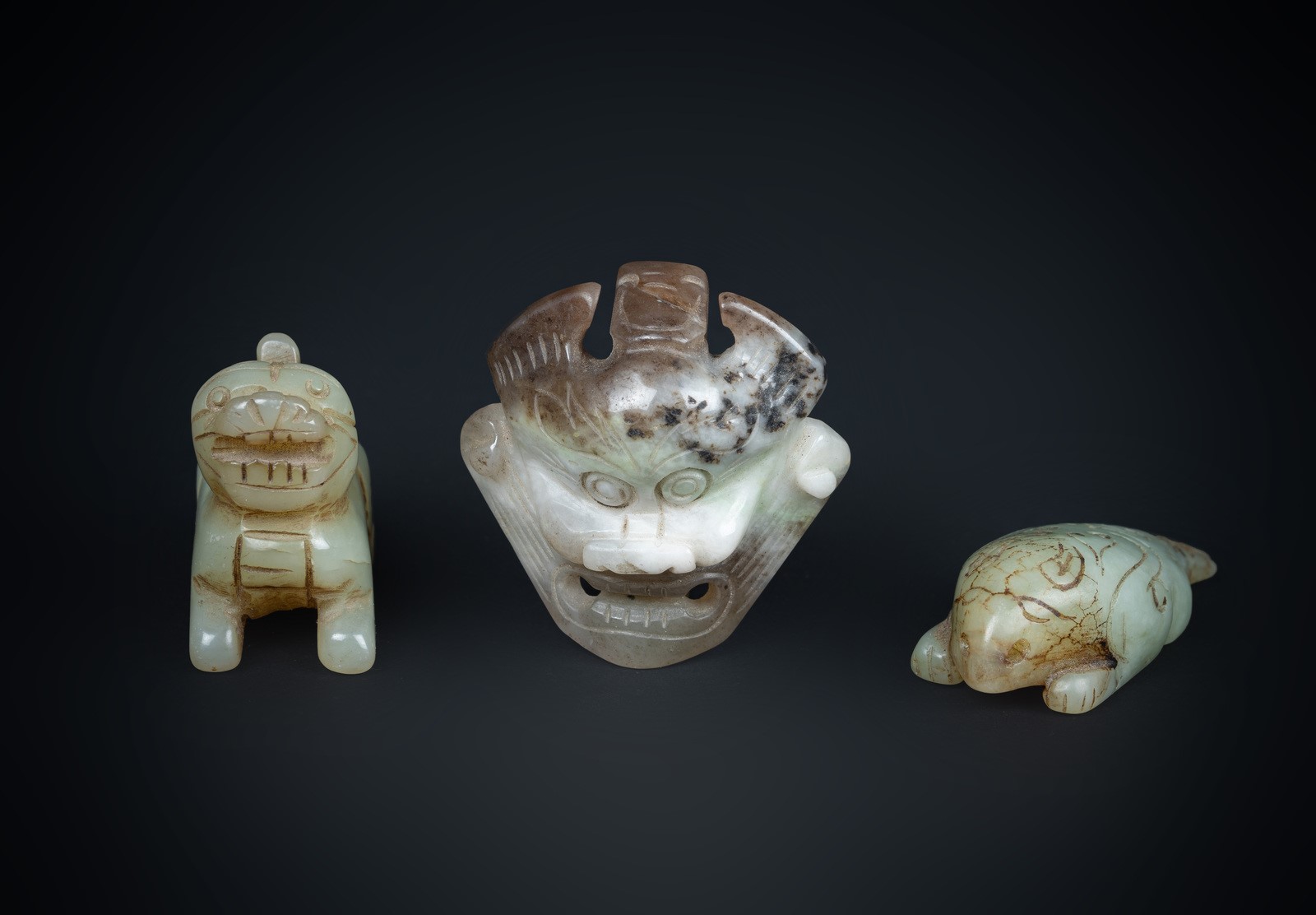 Arte Cinese A group of three zoomorphic jade carvings China, 20th century .
