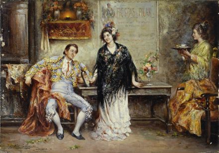 Juan Pablo Salinas Teruel (Spagna, 1871 - 1946) Il riposo del torero Olio su...