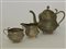Teiera, lattiera e zuccheriera in argento cesellato a motivi vegetali, manici a forma di serpente (gr 1000 ) (difetti)