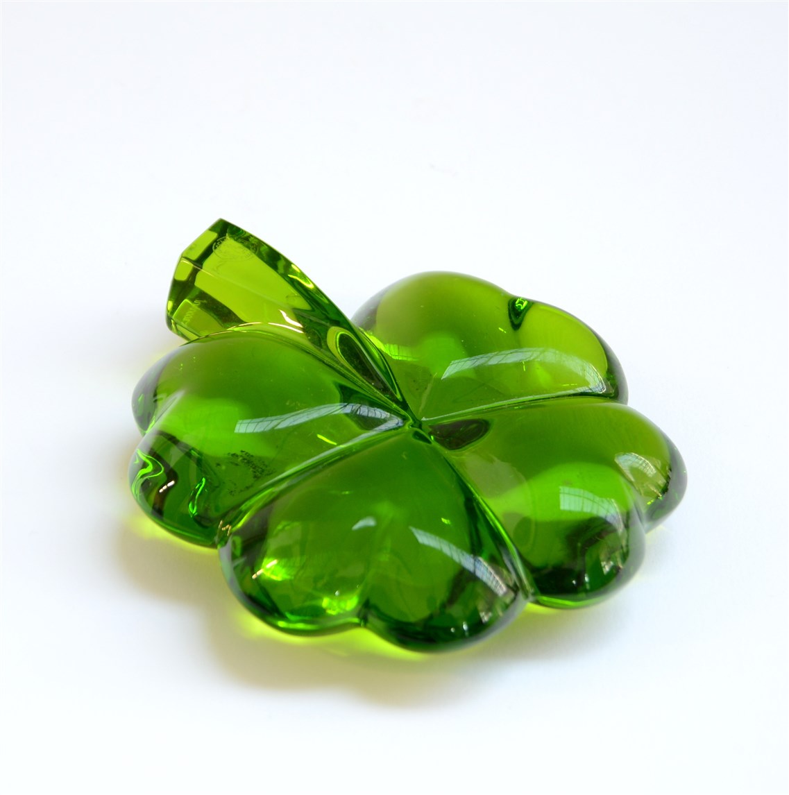 Baccarat Quadrifoglio in vetro verde trasparente soffiato in stampo. Francia,...