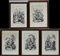 Lotto composto da cinque incisioni (cm 35,5x24,5) in bianco e nero...