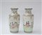 Coppia di vasi in porcellana a smalti policromi nei toni del rosa decorati...