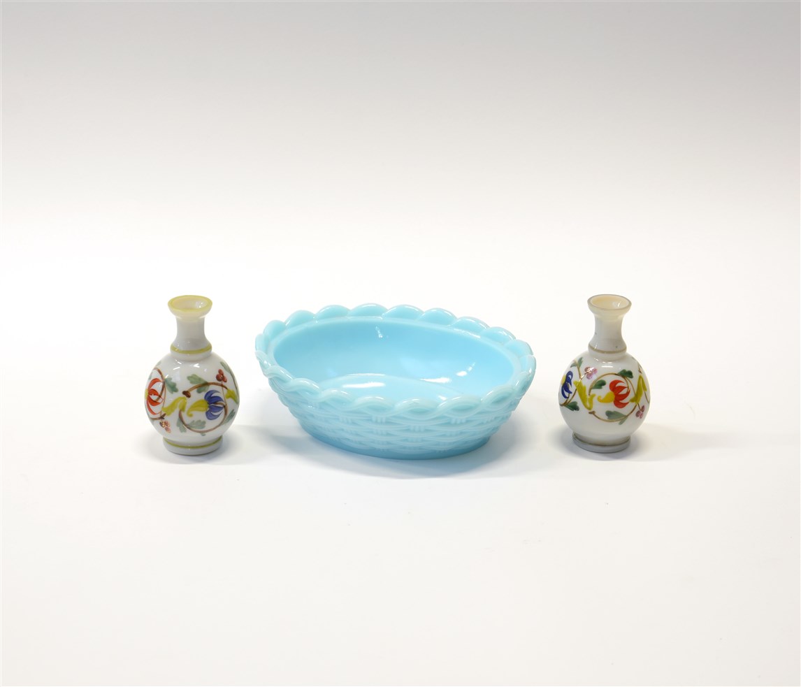 Lotto composto da un portasapone e due vasetti in vetro opalino