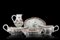 Gruppo di porcellane Famiglia Rosa composto da tre salsiere, un vassoietto e una brocca a decoro floreale