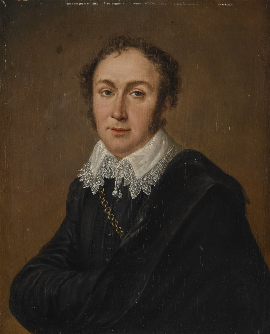 Master of the 19th century "Portrait of Doctor Mase" oil on tablet (cm 27.5x22) inscribed on the reverse. Framed (defects)