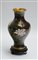 Vaso in metallo cloisonné decorato a motivi naturalistici, base in legno. Cina, secolo XX (h cm 23) (lievi difetti)