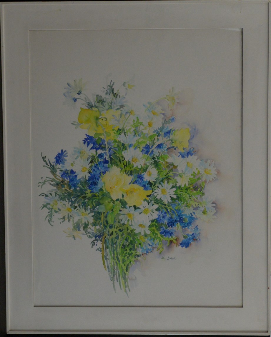 Acquarello raffigurante un mazzo di fiori firmato Dobelli (cm 75x57) in...
