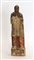 Scultura in legno intagliata e dipinta raffigurante personaggio maschile in abiti medievali (h cm 56) (difetti)