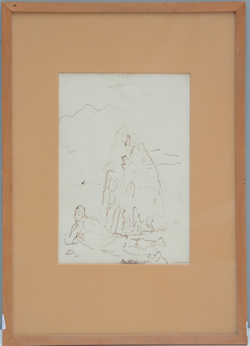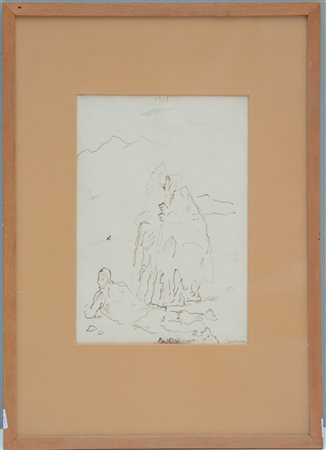 Felice Carena (Cumiana 1879 - Venezia 1966) "Pastori" 1962, disegno a china...