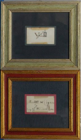 Lotto di due bozzetti "Original Rebus-Karte", tecnica mista su carta, misure diverse, secolo XIX. In cornici (difetti)
