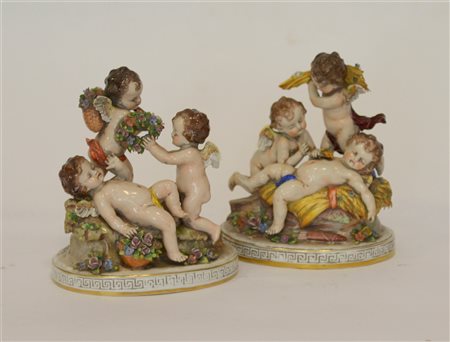 Manifattura della prima metà del secolo XX "Putti" due grupi in porcellana...