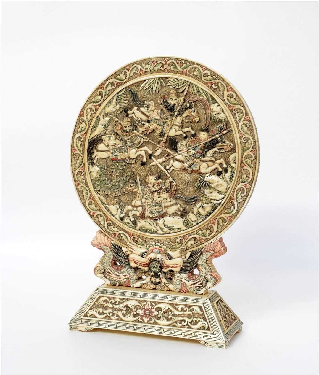 Disco in osso decorato a tasselli con base (h. 55 cm tot)(difetti) -EN .