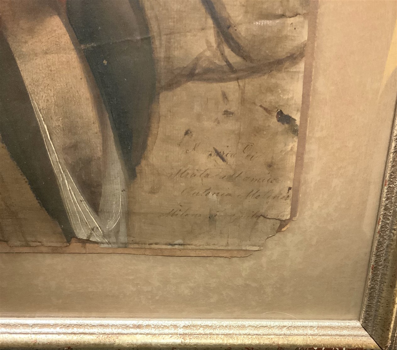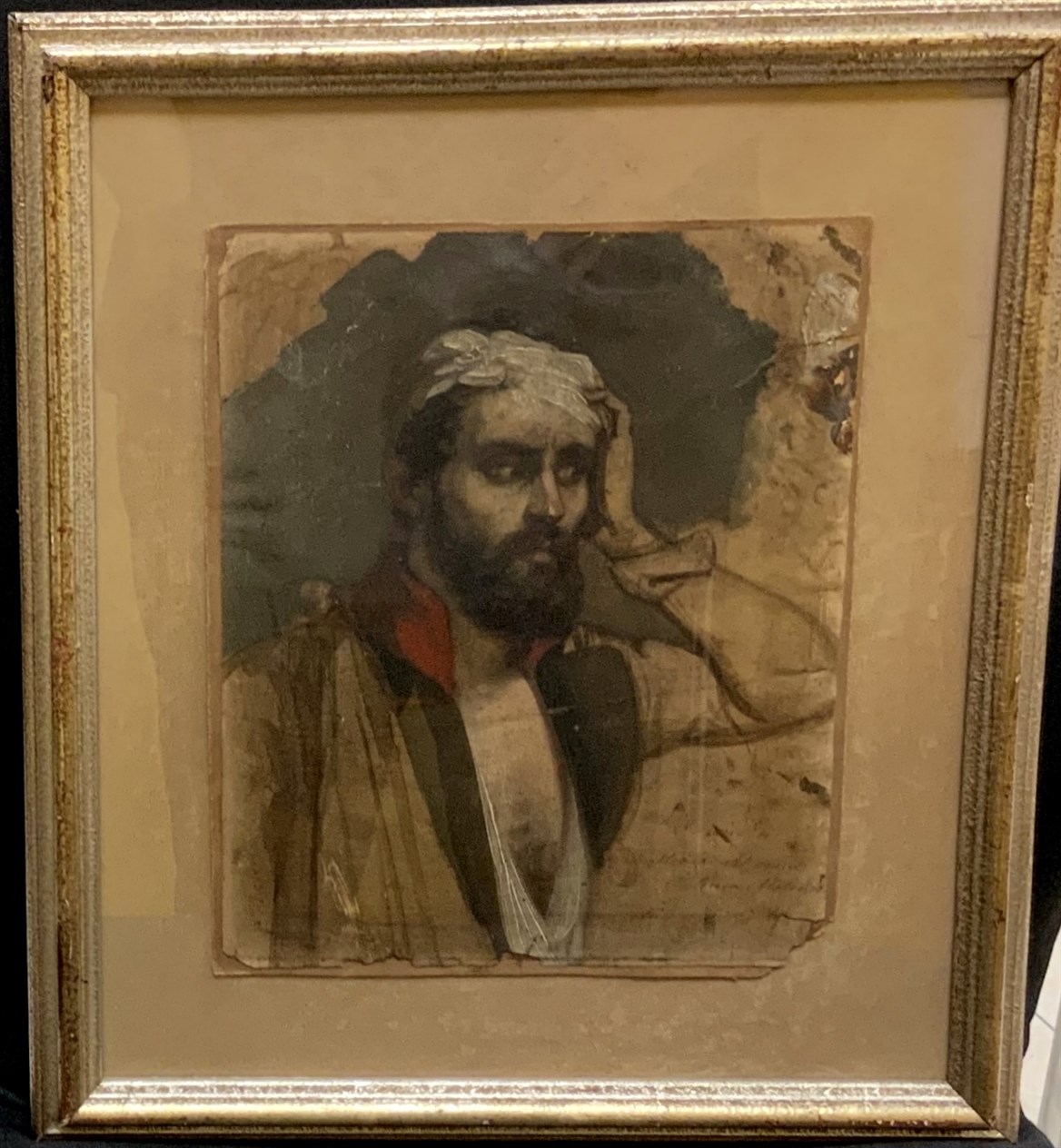 "Il convalescente" olio su carta riportata su cartoncino (cm 25x21) Firmato, dedicato e datato 5 aprile 1869 in basso a destra. In cornice (gravi difetti)