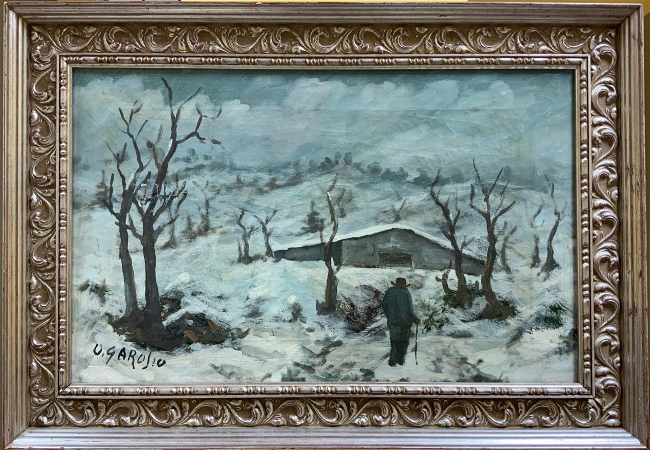 Ottorino Garosio (Vestone 1904 - 1980) "Il ritorno" olio su tela (cm 35x55)...