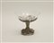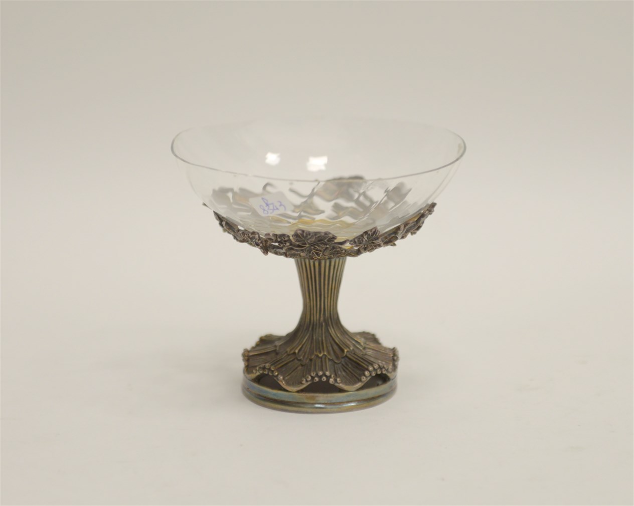 Coppetta con base in argento cesellato con tralci di vite e uva, coppa in vetro (difetti)