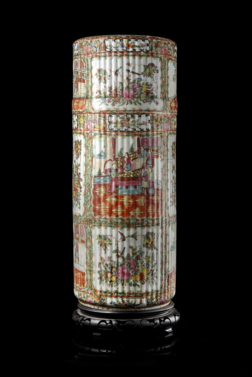 Portaombrelli cilindrico in porcellana Famiglia Rosa cantonese decorato a...