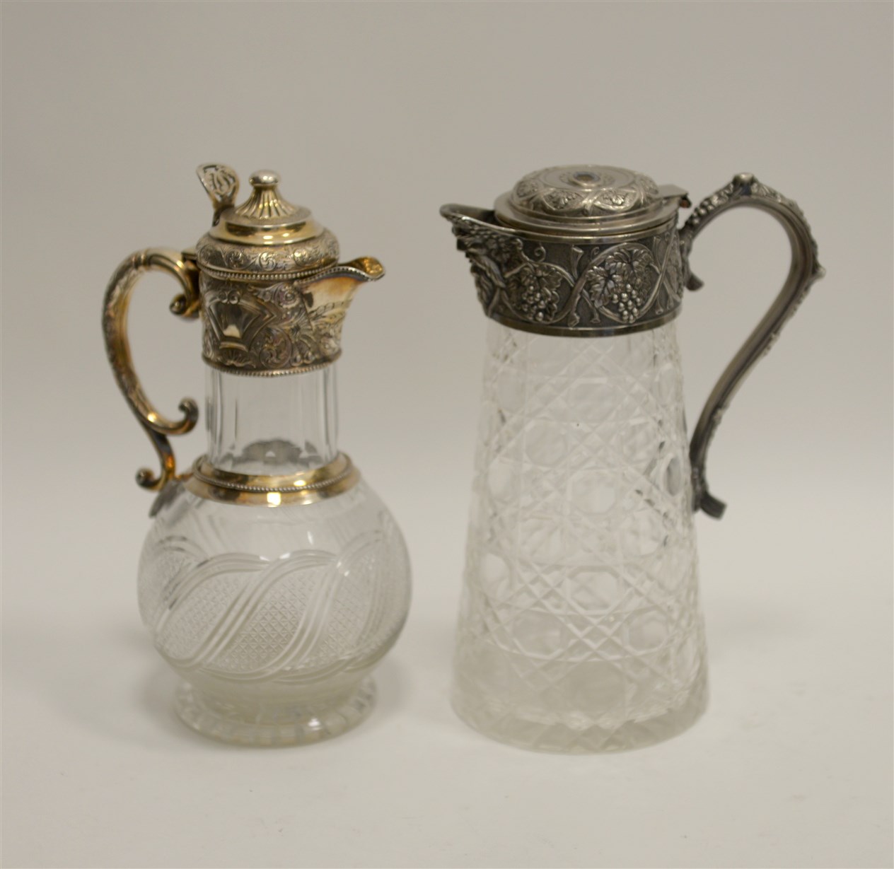 Lotto composto da una brocca in vetro e argento cesellato, punzoni inglesi ed ua in vetro e metallo argentato (difetti e mancanze)