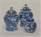 Tre vasi in porcellana bianca e blu decorati con motivi floreali. Cina, sec....