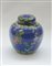 Potiche con coperchio in metallo cloisonné a decoro floreale su fondo blu....
