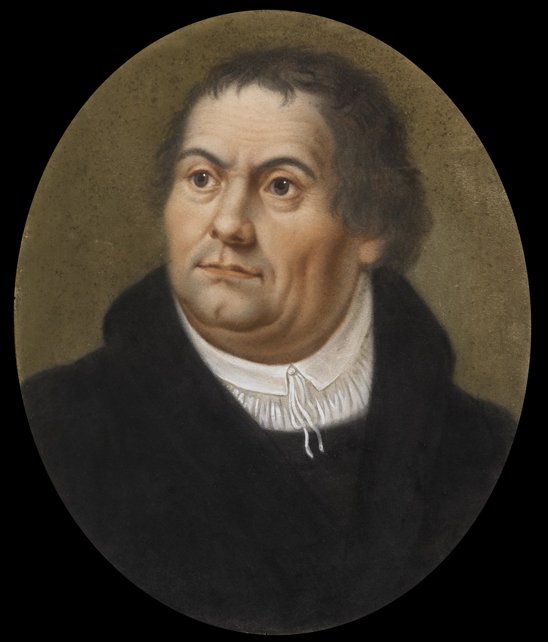 School of the 19th century "Portrait of a Gentleman with Black Suit and White Shirt", coloured pastels on canvas backed paper (cm 40x33.5) Framed (defects)
