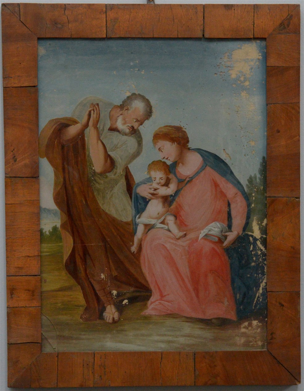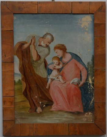 Artista del secolo XIX “Sacra famiglia”, verre peint (cm 45x32,5). In cornice (difetti)