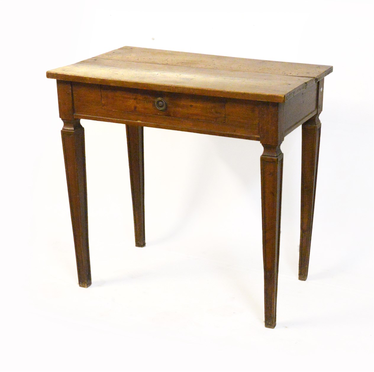 Lot 687 | Tavolino ad un cassetto sottopiano, gambe rastremate. Inizio secolo XIX (cm...