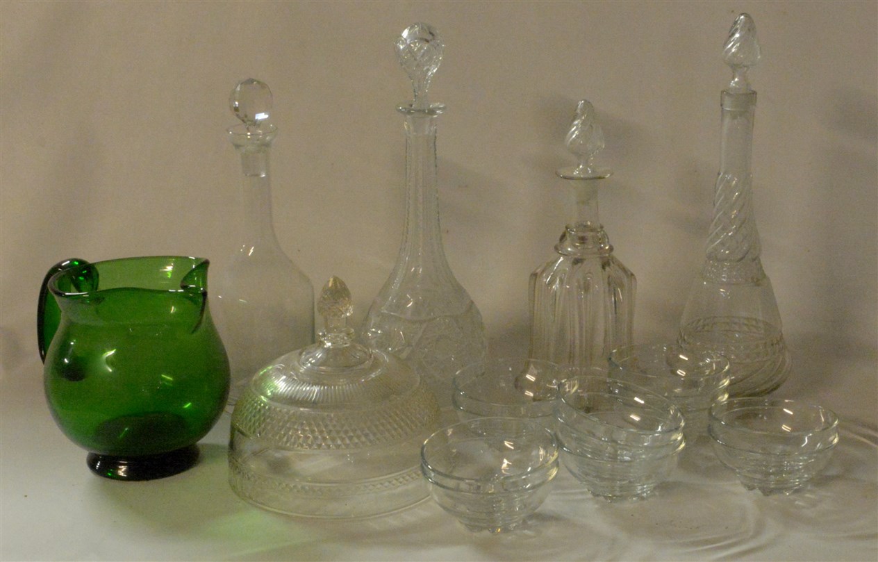 Lotto composto da quattro bottiglie con tappo e dodici ciotoline, in metallo e vetro (difettti)