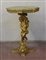 Tavolo da salotto in legno laccato e dorato. Piano di forma ottagonale con grembiale in legno intagliato a finto tendaggio sorretto da putto a tutto tondo poggiante su piede a mensola (cm 50x75x50) (difetti e mancanze)