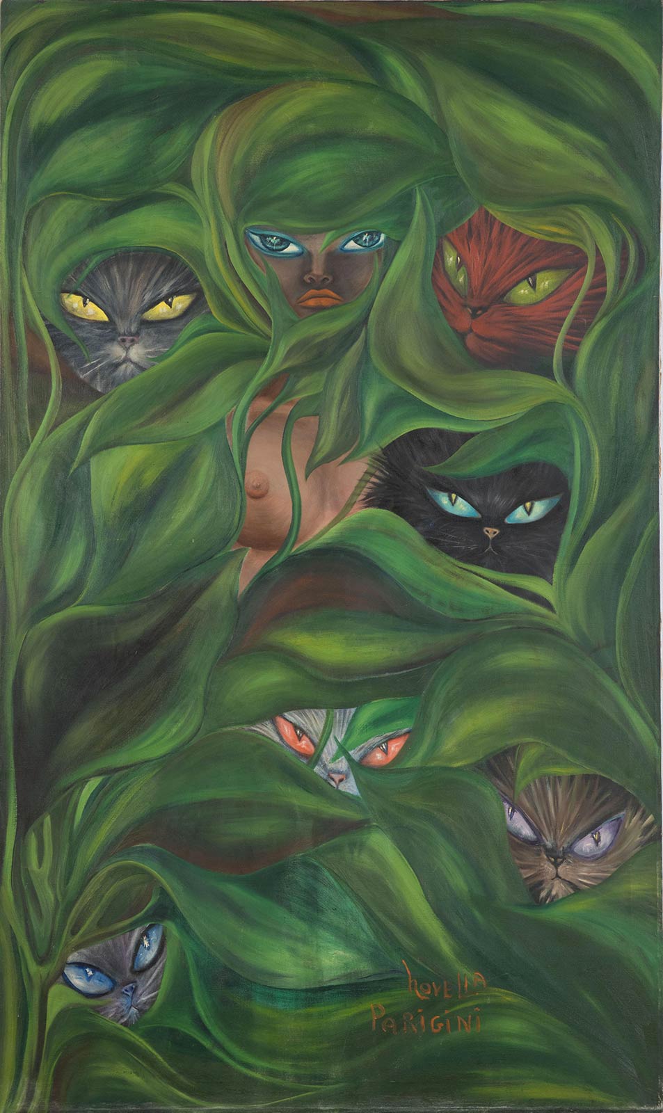 Olio su tela, firmato in basso a destra Novella Parigini, H cm 170x100