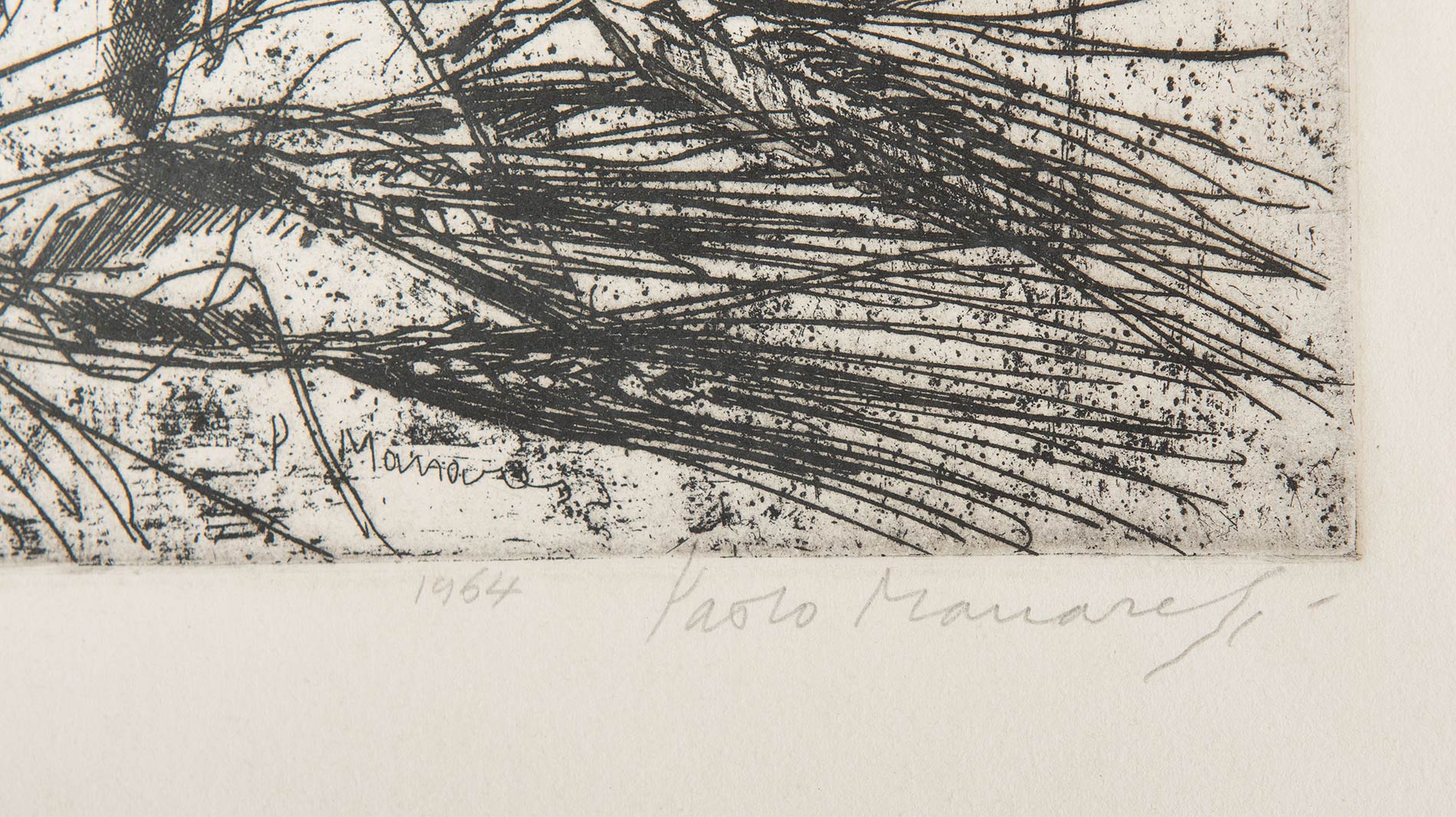 Litografia su carta, firmata in basso a destra Paolo Manaresi, in basso a sinistra numero di tiratura 13/30, in basso al centro data 1964, Lastra H cm 25x19.5