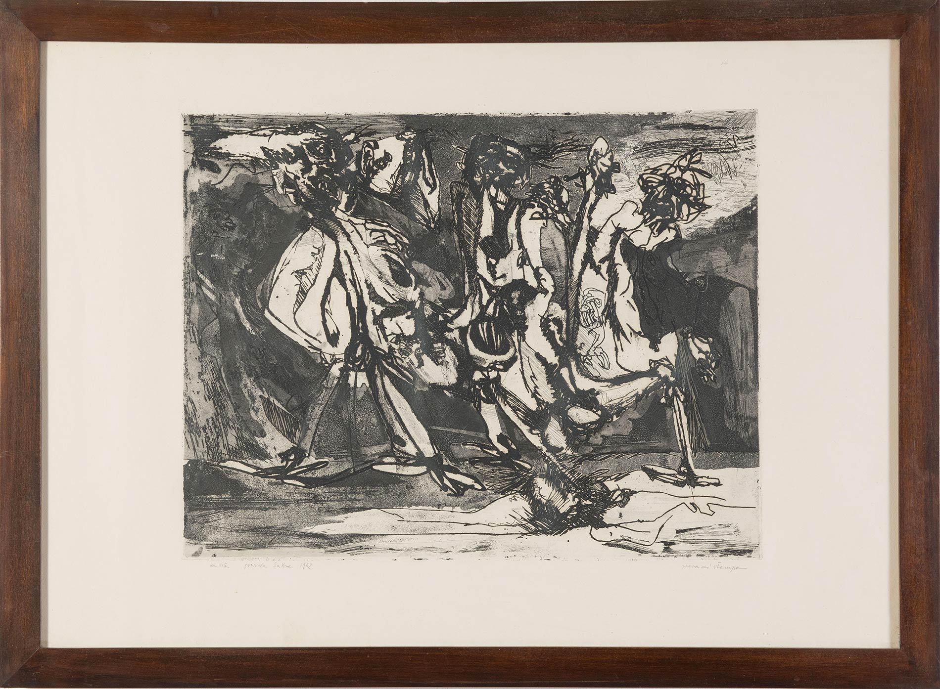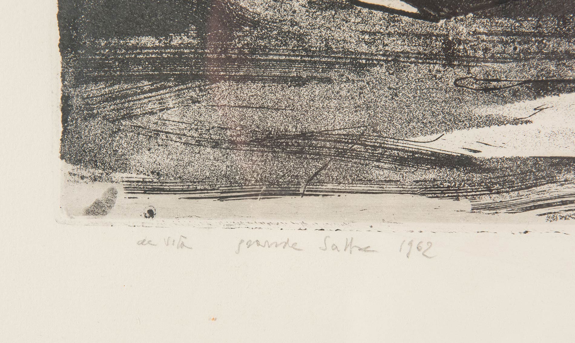 Litografia su carta, firmata, datata e titolata in basso a sinistra De Vita 1962 – titolo non decifrato, esemplare ‘prova di stampa’, Foglio H cm 64x88 – Lastra H cm 47x61