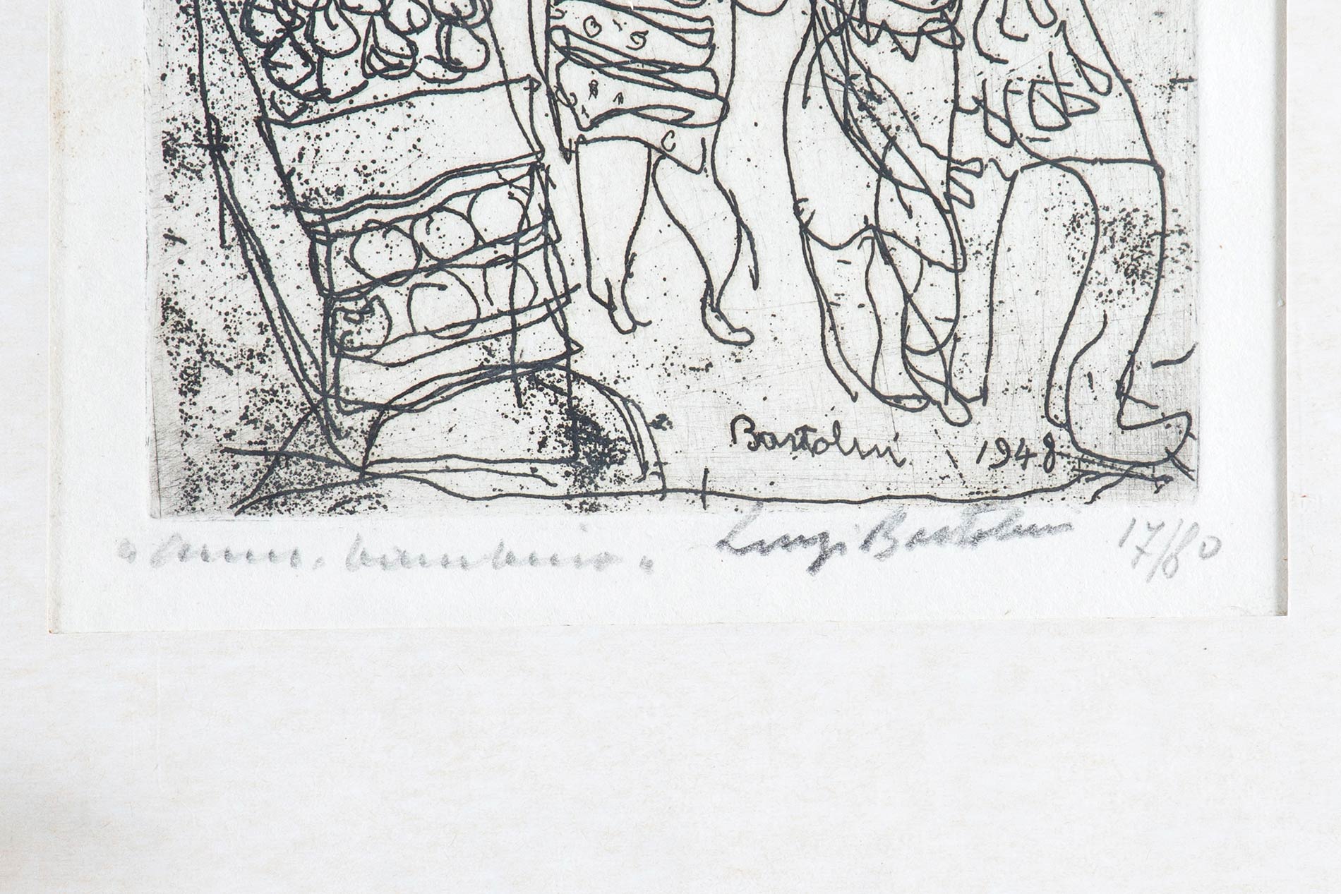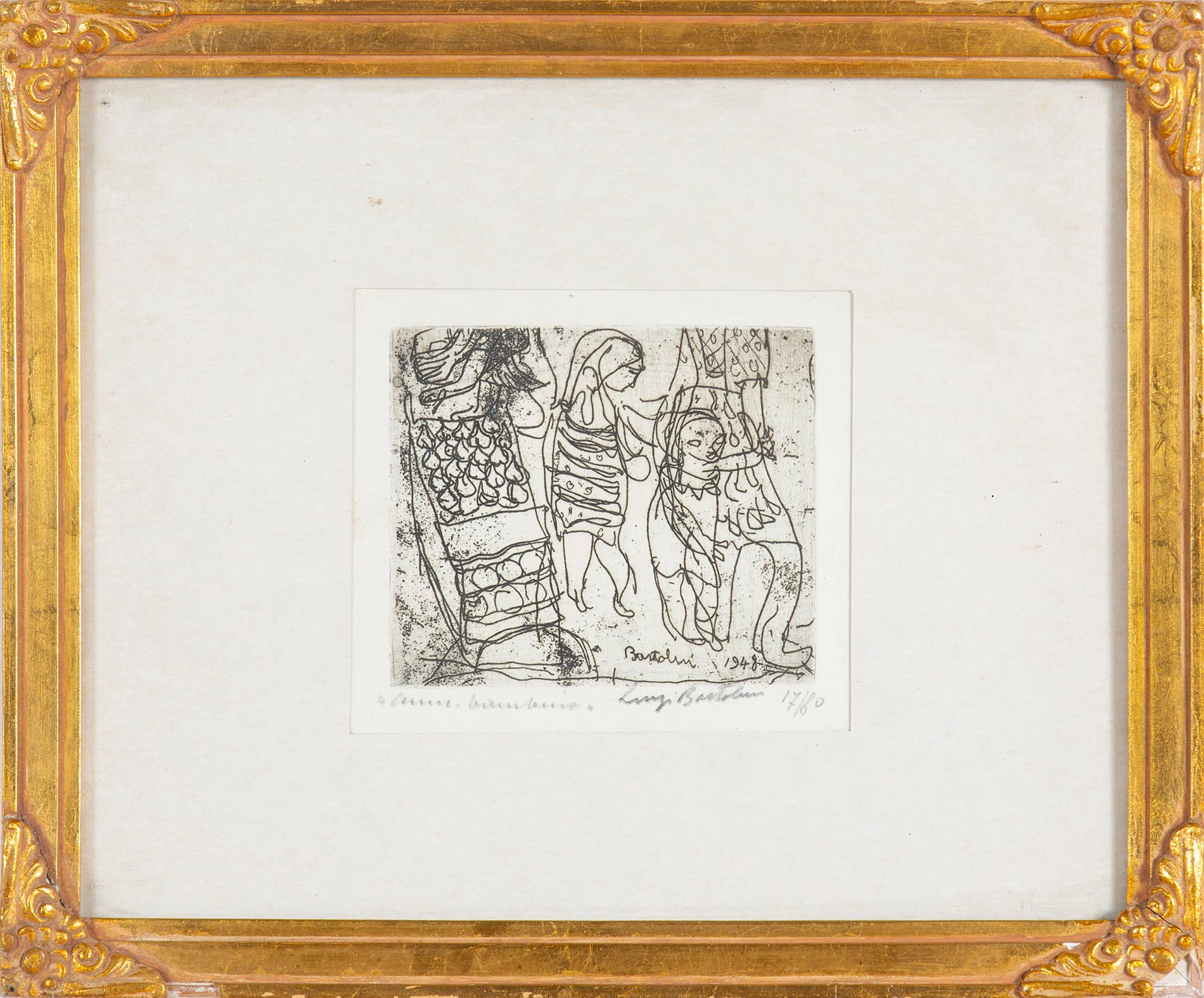 Incisione su carta, firmata in basso a destra L. Bartolini, numero di tiratura in basso a destra 17/80, titolo non decifrato in basso a sinistra, Lastra H cm 9.7x12